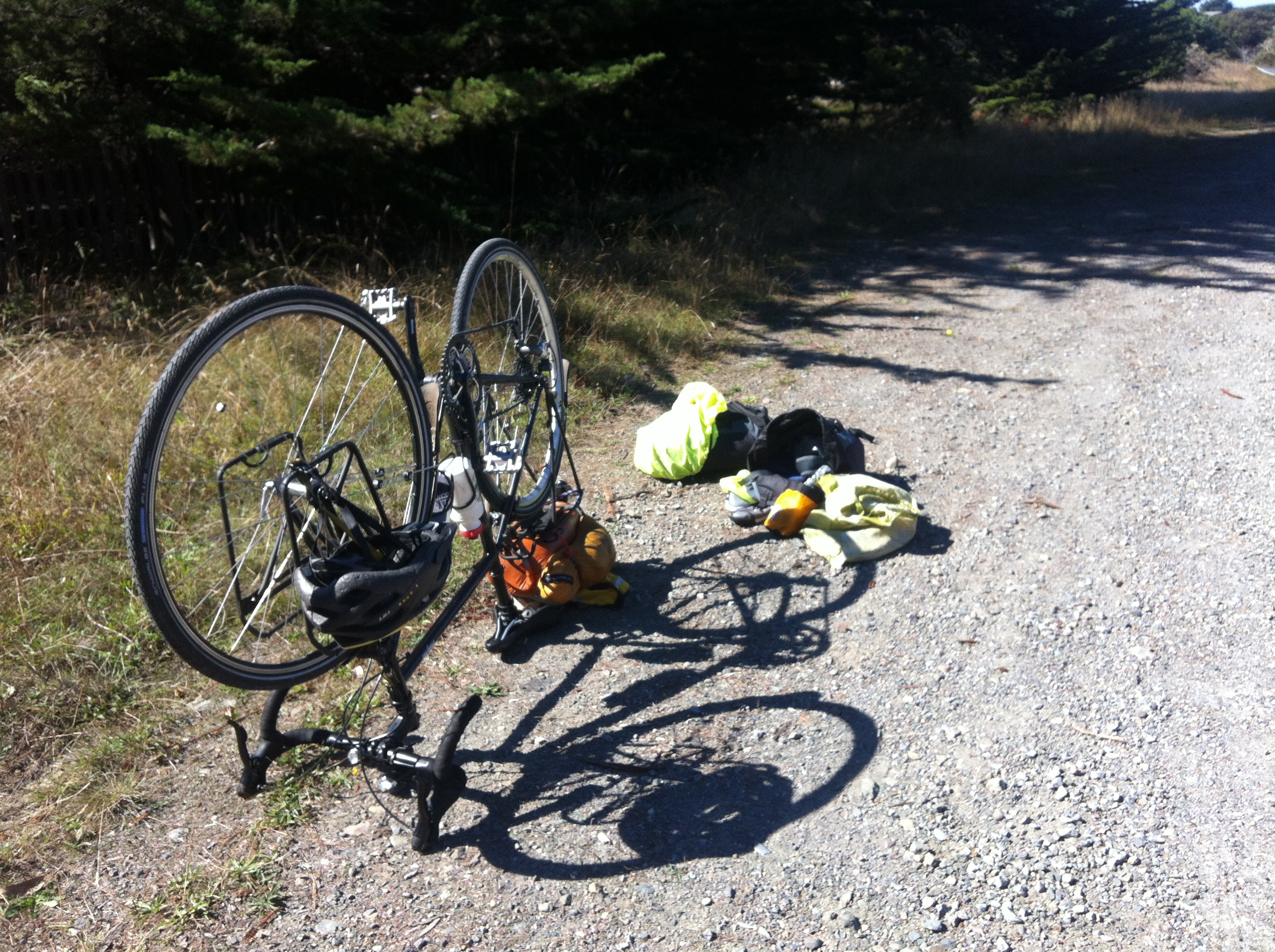 I tried not to stop too much, and was feeling so free with how light my bike was. I was a little worried about feeling unstable since I had all the weight moved to the back and nothing up front, but I got used to the new balance quickly and was moving pretty fast. I think I was averaging about 15mph instead of the usual 10-12mph. On the steep hills I was used to going about 4mph, but now was easily maintaining about 6-7mph. The big difference was that I was able to keep a higher cadence. With how my bike is geared (not having a lower gear on a third chainring), the hills would quickly kill my cadence which kills momentum and is less efficient overall. With my drop of weigh I was able to keep my cadence closer to what is most efficient. I also noticed that I was building up speed quicker on the flat sections, and able to keep it up near 20mph without the effort I was putting in before. All this made for a very pleasant ride to Manchester, and I passed the KOA a little after 5:30. Having still another hour of daylight I continued on and figured I’d find something in the next town up, Point Arena.