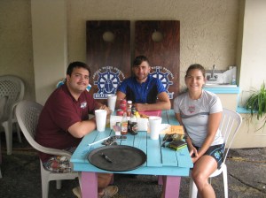 The entire red snapper (eyes and fins and everything) came out on a large plate with rice and beans and vegetables. It was actually delicious, and we contemplated ordering more food after we finished the plate. Dallas finally succeeded in dislodging whatever was stuck in his eye, and we rode around the corner to a mall plaza where we ate ice-cream. We hadn’t gotten very far, but it was getting late and would be dark in just a few hours. We decided to head slightly out of the way to get to a nature reserve where we would hopefully find a safe spot to camp.