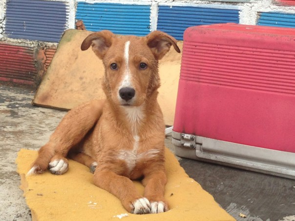 The next day, while walking to the market to get vegetables, I noticed a dog staring out the window of a veterinarian shop. On the way back from the market, I pointed him out to Lenin. We went inside to say hi, and four or five other dogs came to greet us. The one puppy who was most friendly with me was a mutt that they had rescued from the street, and the man told us he was free for adoption. We stayed and played with all the dogs for a long time, but in the end, I couldn’t leave without this puppy. The man in the shop gave us a leash, harness, two toys and a bag of dog food, and we left with our new dog.