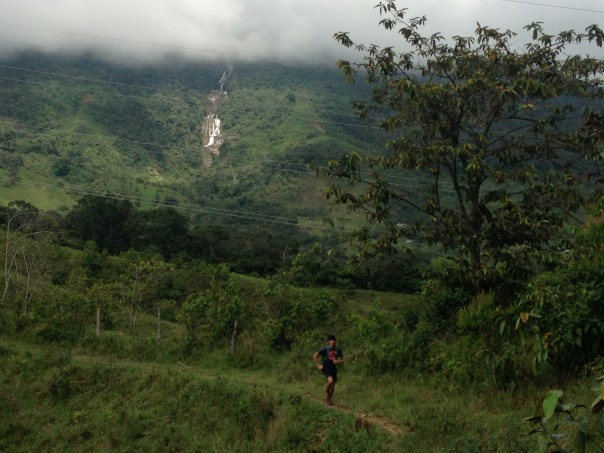Originally, we were going to bike back to Guatape after one night in Puerto Rico, but it was so beautiful and so difficult to get to that we decided to stay another day. We rose early to run to San Carlos, about five miles away. Before leaving, Lenin got instructions from Luis, the father of the family caring for Paola’s house, for how to get there via trails instead of taking the steep and rocky road that we had driven up the previous night. We started off on muddy trails through cow pastures, following the heavy footsteps of the cows. Sadly, much of the land has been stripped of its natural vegetation and replaced with grass, lowering the tolerance of the land for rainwater. The saturated land doesn’t have enough trees or other plants to soak up the water, so it ends of being muddy and slippery, also creating landslide hazards. Fortunately, we soon entered a more untouched section of jungle where the trails were dryer, and we gained more traction.