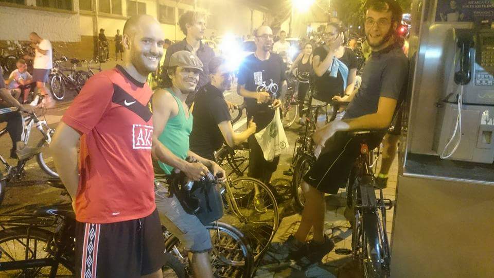 This Colombian guy started talking me, asking if I realized that the ride was going to be difficult, clearly doubting the folding bike’s capabilities of crescing the upcoming steep hills. Caught off-guard, and only really understanding that he was asking about my bicycle, I started explaining that the bicycle was not mine, and I had borrowed it from a friend. He switched to speaking in English, and explained again that the ride was going to be really challenging tonight. I told him again that the bicycle was not mine, so I wasn’t sure how it would perfom on the hills, but we’ll just see when we get there.