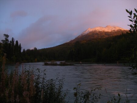 Any chance we got to move around in between long hours of sitting in the car felt great, and the weather could not have been better for us this time. We had to return the car the next morning, so we couldn’t spend the night on the Kenai. As we drove back up to Anchorage, the setting sun lit the sky behind us with shades of pink and orange. It started raining and snowing as we drove North into the darkness.