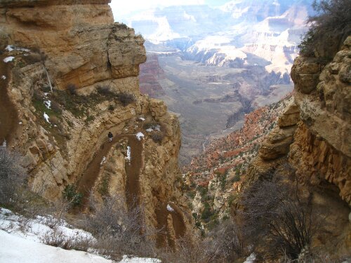 The South Kaibob Trail stretches for 7 miles and drops over 4000 vertical feet before reaching the Colorado River