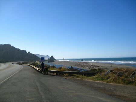 Brookings is the southernmost town in Oregon, and Dallas and I spent a little too much time there. Since all the hills slowed us down, we got there a bit later than anticipated and didn’t actually get our daily dose of espresso until after 2pm. This coffee shop we found was nestled by a harbour, with several docks and a cluster of little food places right off the road. In between coffee and pizza, we spoke with Jeremy, who was staying with his girlfriend on their sailboat. Like us, he had quit his job for a more adventurous and fulfilling life of seasonal jobs with plenty of vacationing in between seasons. Hopefully we will run into him and his girlfriend again down the road.