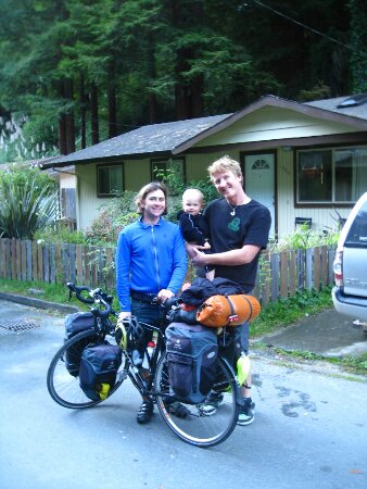 After such a long day of riding, Dallas and I slept in at his cousin’s house and enjoyed a relaxing home-cooked breakfast while playing with Mike and Toni’s son, Felix. Mike brought us on a walk through the Redwood Park and Arcata Community Forest, and then we went out for lunch and ice-cream in town. It was a much needed day of rest, since our limbs were still aching when we finally did hop onto our bikes again. It was after 5pm when we left Arcata, so we didn’t make it too far today. We’re spending the night in Eureka and hoping to cover more distance tomorrow.